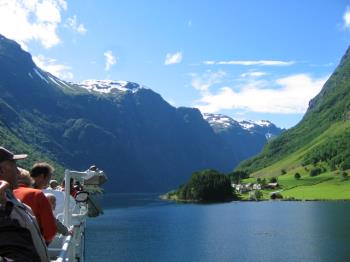 3. Tag: Norheimsund - Sognefjord - Leikanger Über Voss und auf der Stalheimstrasse gelangen Sie nach Gudvangen. Durch den Gudvangentunnel nach Flåm. Weiterfahrt durch den Lærdaltunnel, den längsten Straßentunnel der Welt zur Fährüberfahrt über den Sognefjord von Fodnes nach Mannheller. Entlang des Nordufers des Sognefjordes erreichen Sie Leikanger zur nächsten Übernachtung.